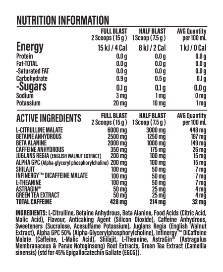 As athletes, we care about what we fuel our body with and know that you do as well which is why Kamikaze is a 100% transparently labeled Pre-workout. So, you can see exactly what's inside every single serve.