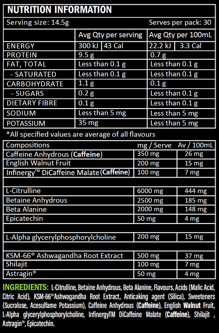 As athletes, we care about what we fuel our body with and know that you do as well which is why Kamikaze is a 100% transparently labeled Pre-workout. So, you can see exactly what's inside every single serve.